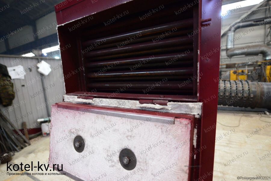 Снаружи устанавливается каркас, на котором крепится обмуровка. Обмуровка выполняется из теплоизоляционного материала и защитной обшивки из полимерного листа. В обмуровке имеется дверь для очистки поверхностей нагрева от отложений в процессе эксплуатации.